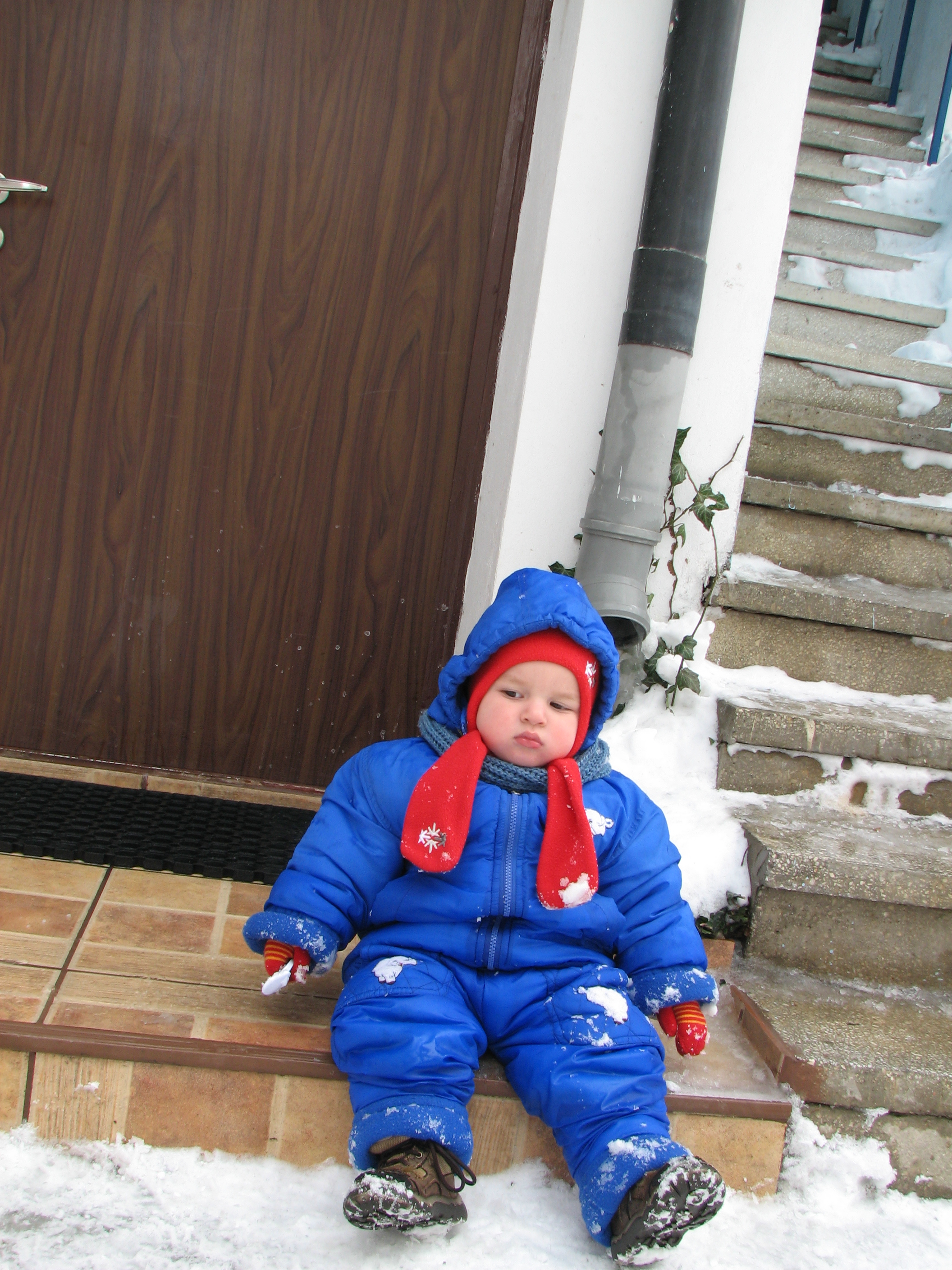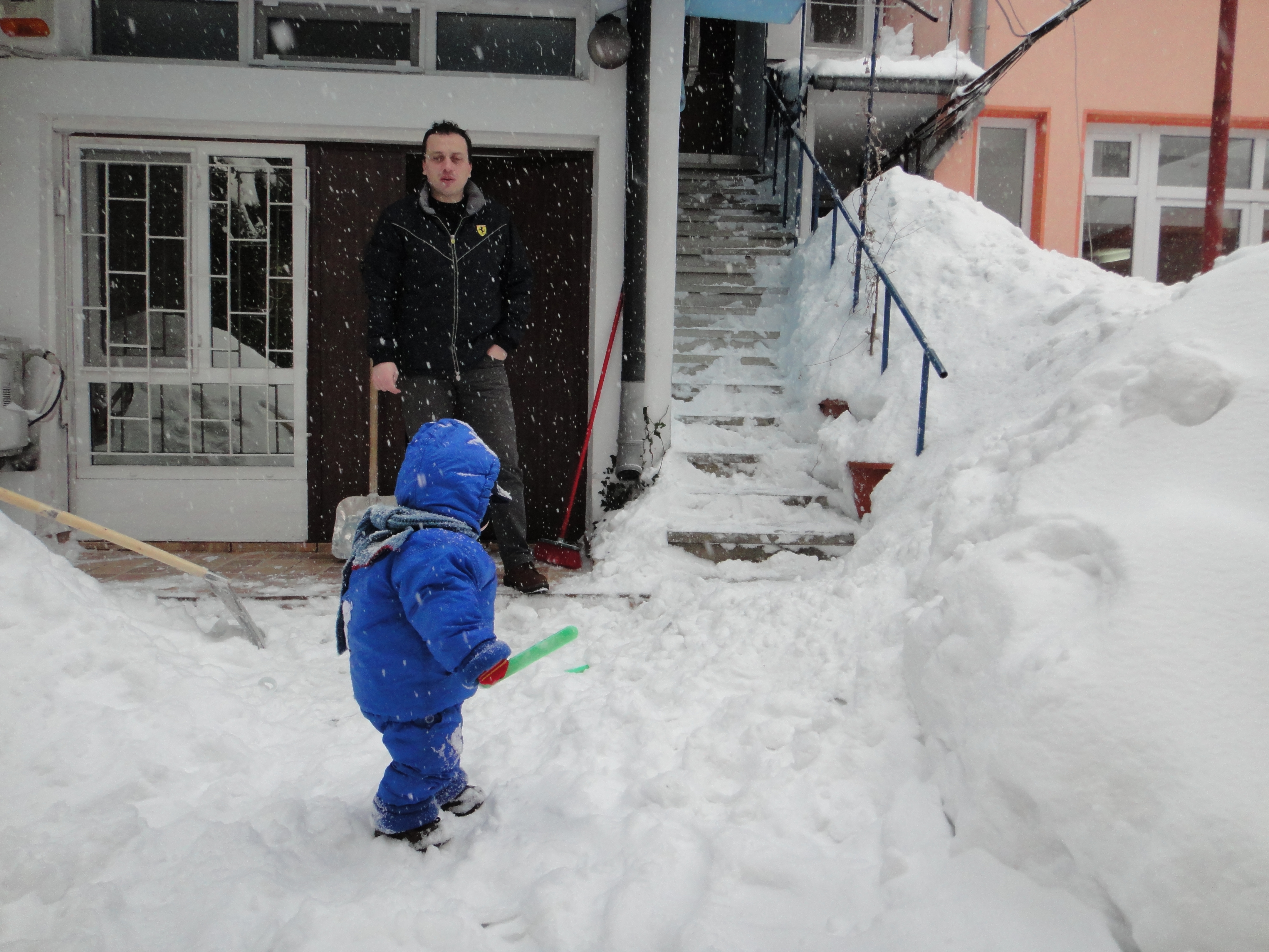 Codul rosu pe balcon. Si nametii din curte. Nu pot sa imi imaginez ce va fi cand se va topi – nici pe balcon, nici in curte; probabil ca vom avea piscina.