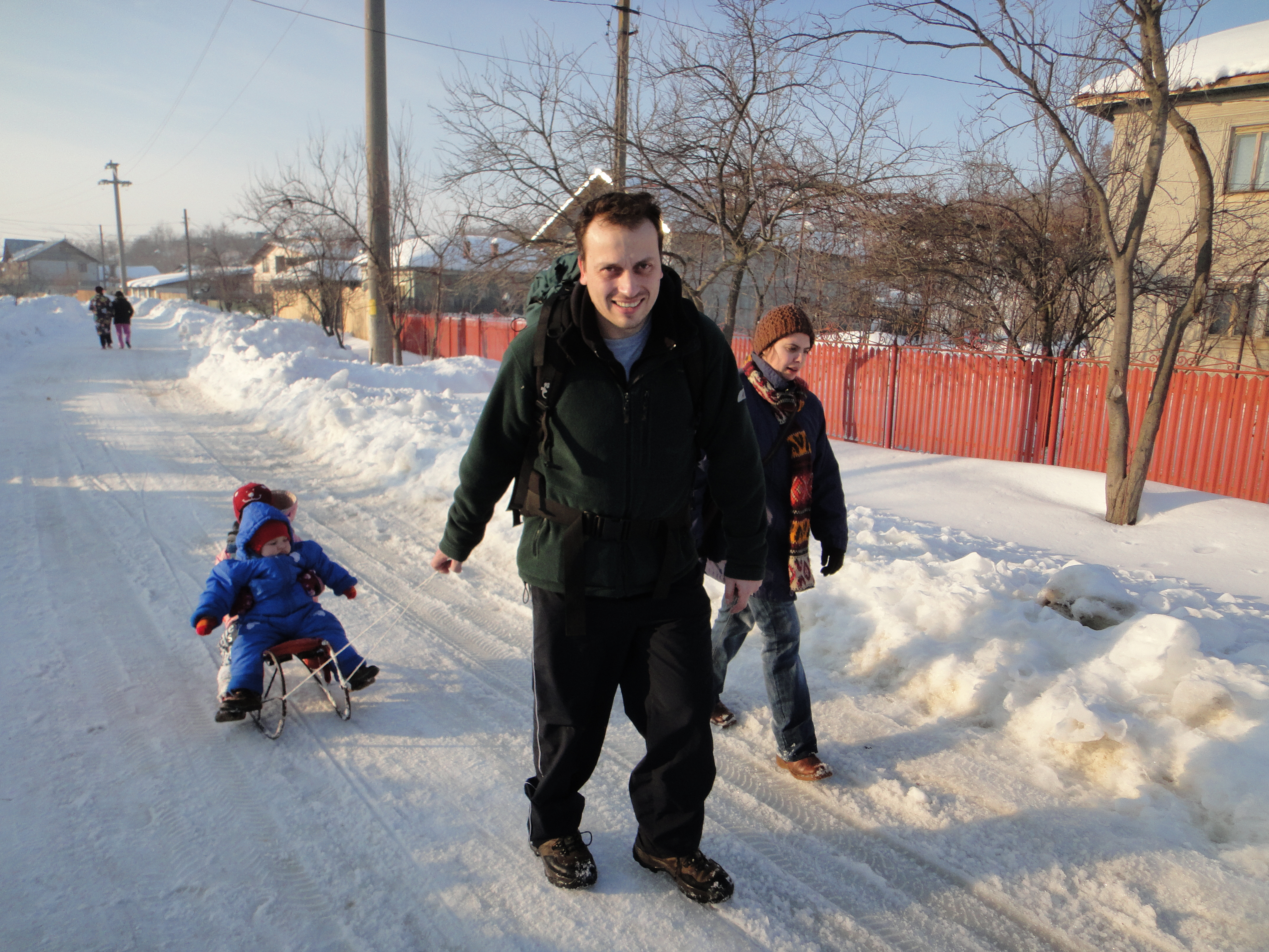 Asa ca am chemat rudele care mai sunt prin Bucuresti si au venit rudele care au mai putut sa vina. Unii in sesiune, altii cu rubeola si in sesiune, unii doar cu febra de origine necunoscuta, unii inzapeziti, altii pur si simplu raciti; si iaca-asa am ramas aproape fara musafiri. Si Sara care isi luase rochie de petrecere si astepta de 2 zile musafiri… Aseara la 12 noaptea, Sara nu dormea si ii spun: acum e ziua lui tata, iar Sarei i s-a intins un zambet pana la urechi si a zis: si acum vin musafirii?